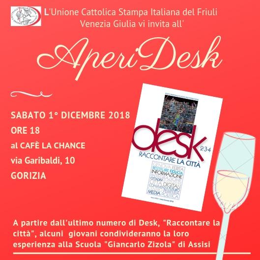 Sabato 1° dicembre a Gorizia alle 18.00 torna l’appuntamento di AperiDesk, presso il “Cafè La Chance“, via Garibaldi 10.