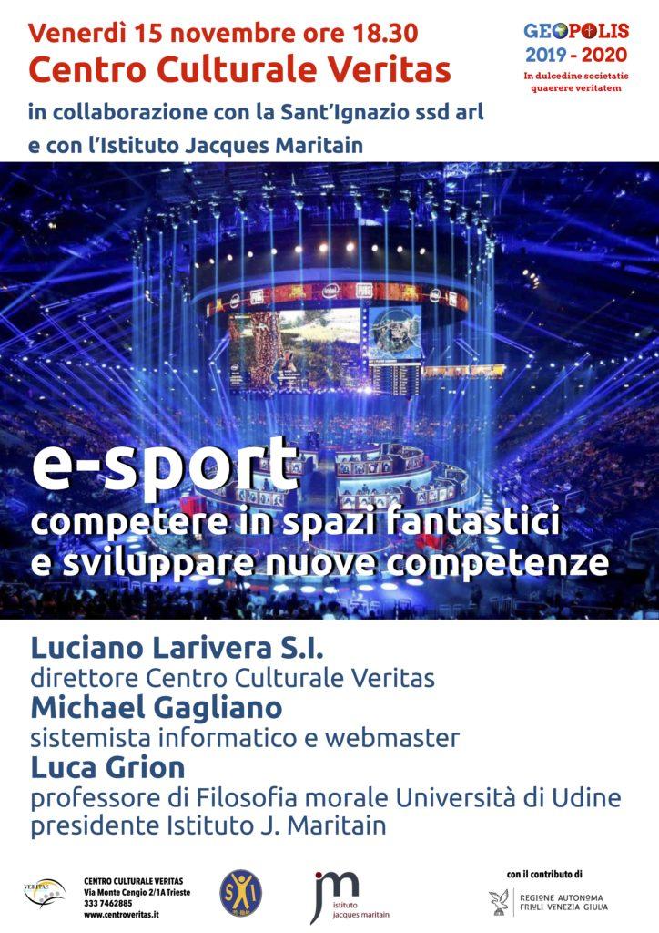 Si svolge al Centro Veritas venerdì 15 novembre alle 18.30 la conferenza “e-sport: competere in spazi fantastici e sviluppare nuove competenze”, in collaborazione con l’Istituto Maritain e con la Sant’Ignazio SSD.