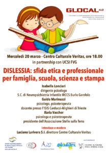 Secondo i dati statistici i bambini con “disturbi specifici dell’apprendimento” (DSA), in Friuli Venezia Giulia, rappresentano il 3,1% del totale. Di questi soltanto l’1% sono stati diagnosticati. L’art. 3 della Costituzione e la legge 170/2010 danno alcune indicazioni basilari sulla tutela dei soggetti affetti da DSA. La dott.ssa Lonciari ha poi spiegato come la lettura necessita di un processo di automatizzazione della memoria. Esso, nei soggetti “normolettori” richiede un impegno attentivo che va diminuendo con la pratica e il passare degli anni; mentre nelle persone con questa caratteristica è sempre presente e molto alto.