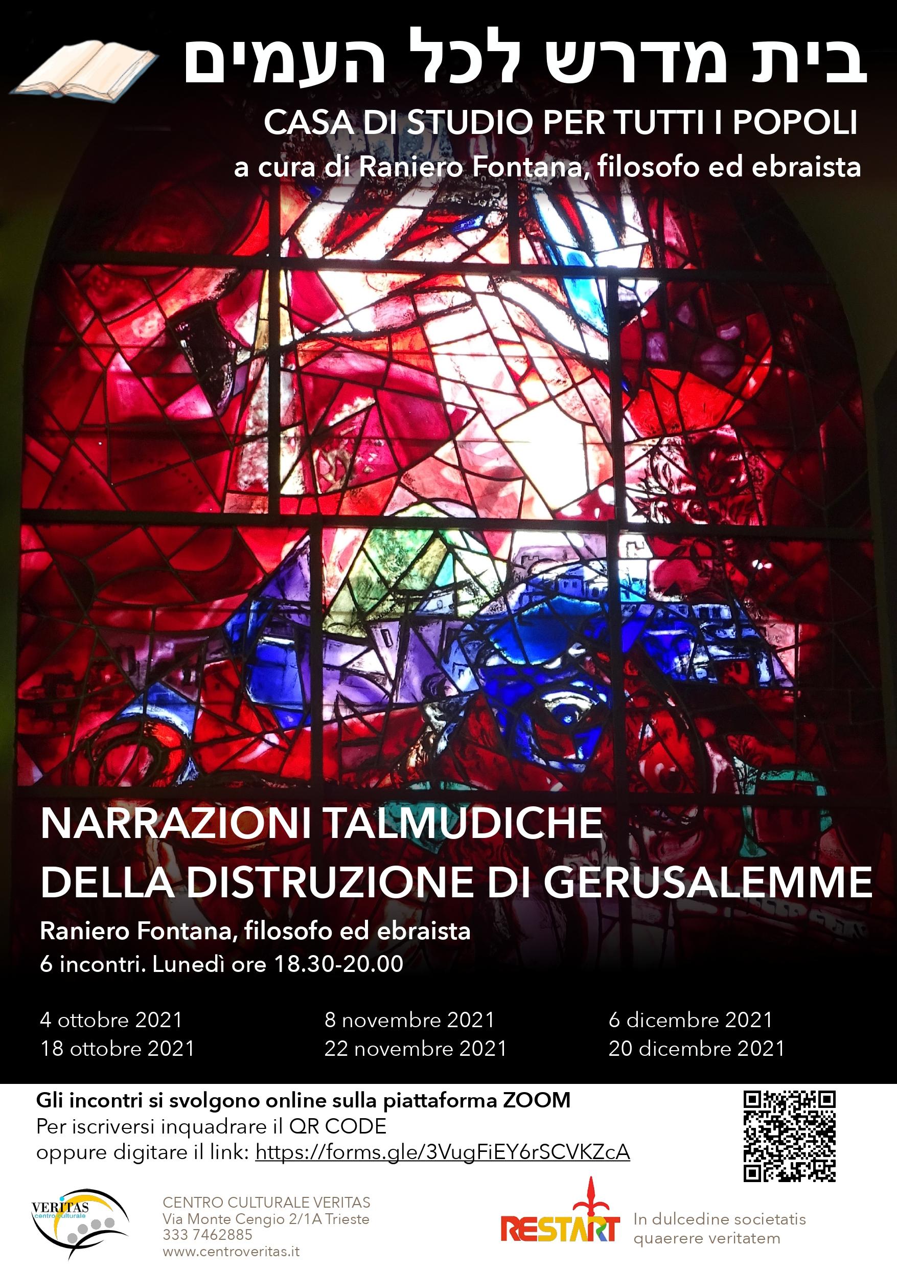 Sei incontri di letture talmudiche vertono sui principali racconti (aggadot) relativi alla distruzione del Secondo Tempio e di Gerusalemme. Una tragedia epocale nella storia del popolo ebraico. I maestri del Talmud, basandosi sulla memoria dei fatti, su cui si è inserita la loro riflessione morale e teologica, hanno trasformato quella storia in leggenda.