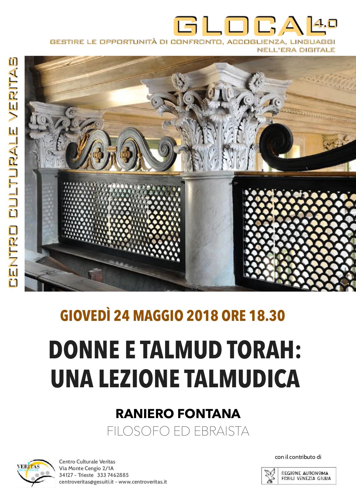 Giovedì 24 maggio alle 18.30 presso il Centro Veritas si terrà l’incontro pubblico dal titolo Donne e Talmud Torah: una lezione talmudica