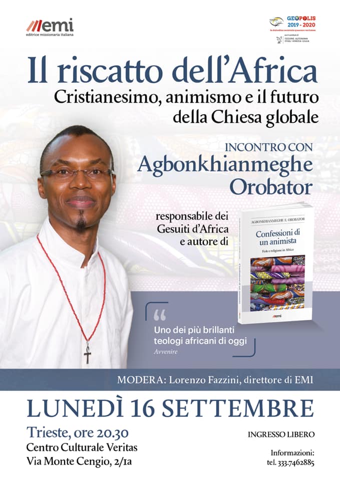 Ricordiamo che p. Agbonkhianmeghe sarà presente anche a Pordenonelegge – Festa del Libro con gli autori, sabato 21 settembre alle ore 11.30, al Teatro Verdi di Pordenone – Sala Ridotto