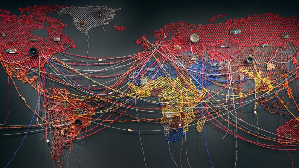 L’immagine del poster è un’opera dell’artista Reena Kallat dal titolo “WovenChronicle” (2016)