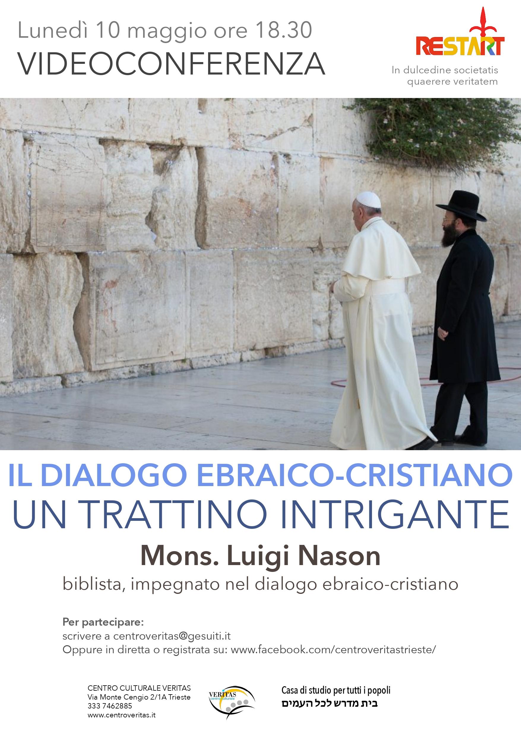 lunedì 10 maggio alle 18.30 mons Luigi Nason, biblista, terrà una videoconferenza sul DIALOGO EBRAICO-CRISTIANO : UN TRATTINO INTRIGANTE.