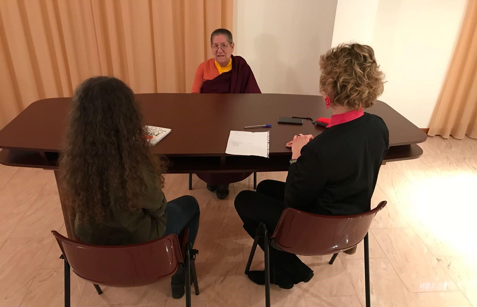 Ha risposto che più di 20 anni fa, grazie a una serie di incontri quasi fortuiti, è stata instradata sulla via spirituale del buddhismo. A motivo della propria spiccata compassione verso il prossimo, della propria curiosità e all’intervento del destino, è potuta entrare a far parte dell’ordine monastico buddhista tibetano.