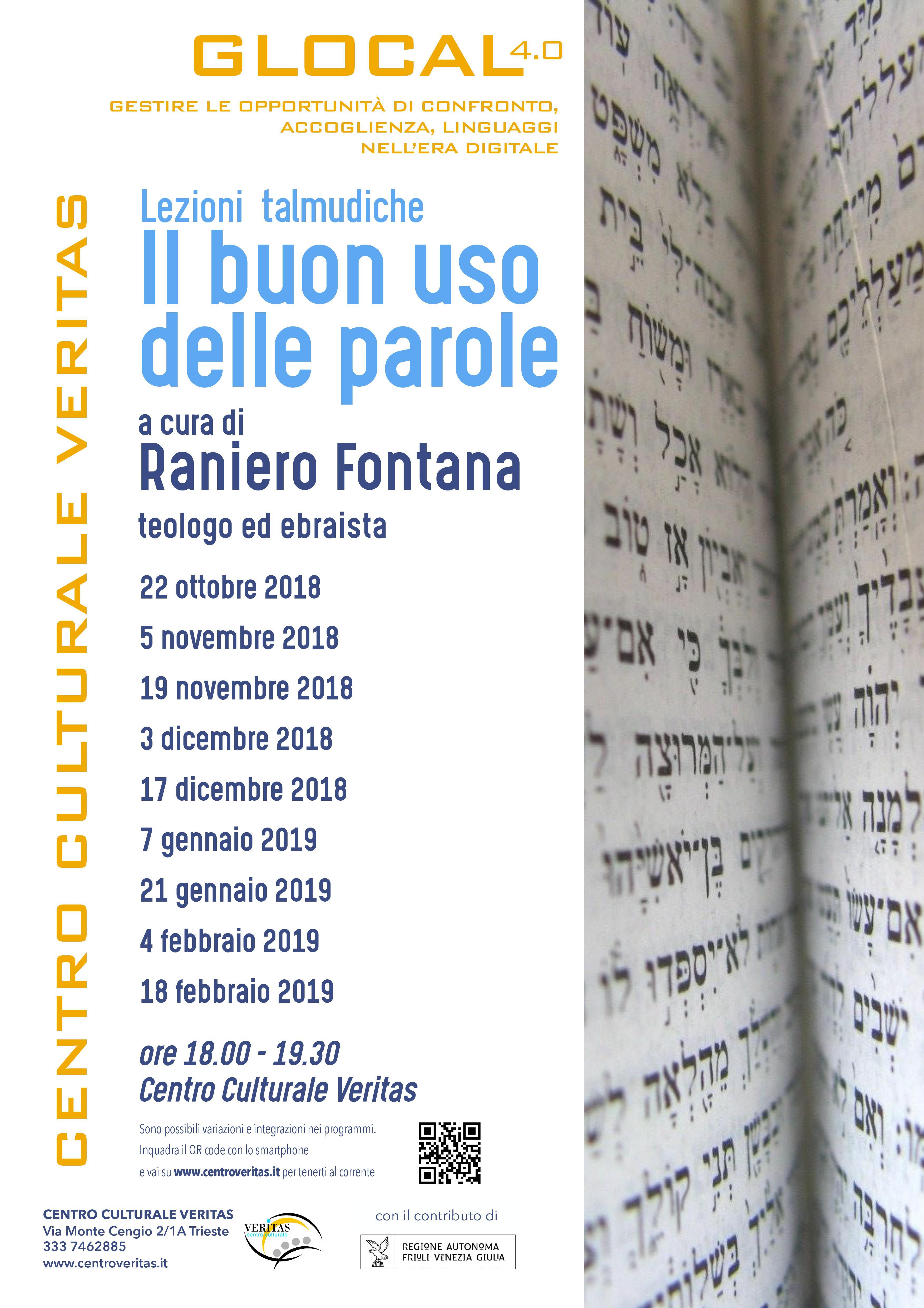 Lezione talmudica 29 Ottobre 201829 Ottobre 2018 Luciano Larivera Lunedì 5 novembre alle 18.00 si terrà il secondo appuntamento sul “buon uso delle parole” secondo il Talmud. Cura la lezione Raniero Fontana, teologo ed ebraista.
