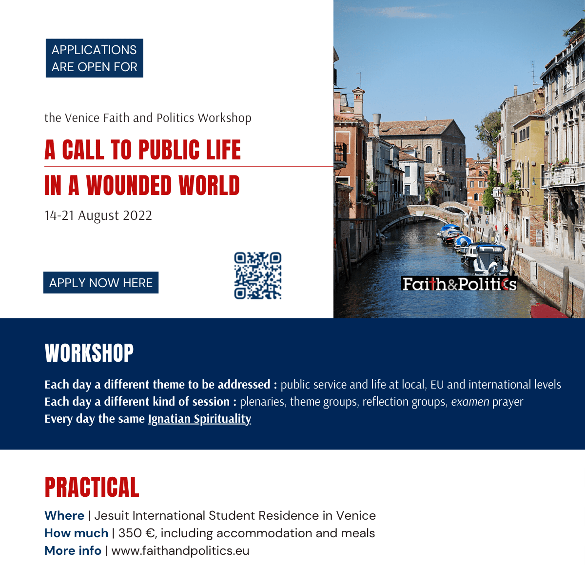 Summer school su Fede e Politica, a Venezia 14-21 agosto 2022 11 Maggio 202211 Maggio 2022 Luciano Larivera Per maggiori informazioni https://faithandpolitics.eu/