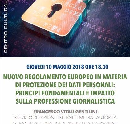 Giovedì 10 maggio dalle 15 alle 18 si terra la lezione di deontologia giornalistica dal titolo: Nuovo regolamento europeo in […]