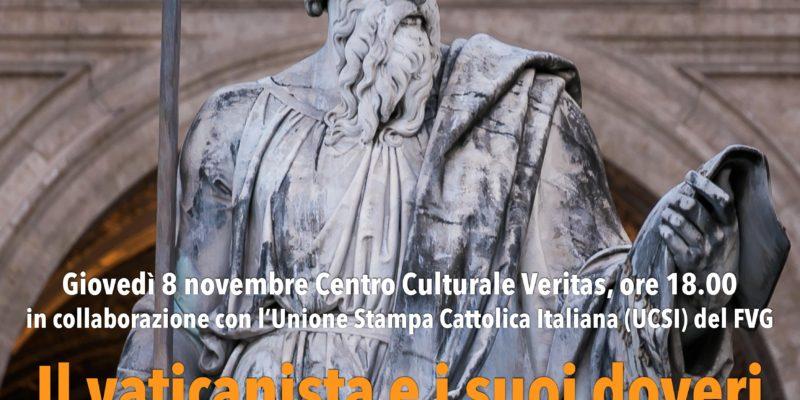 Giovedì 8 novembre alle 18.00 si terra la conferenza dal titolo “Il vaticanista e i suoi doveri”.