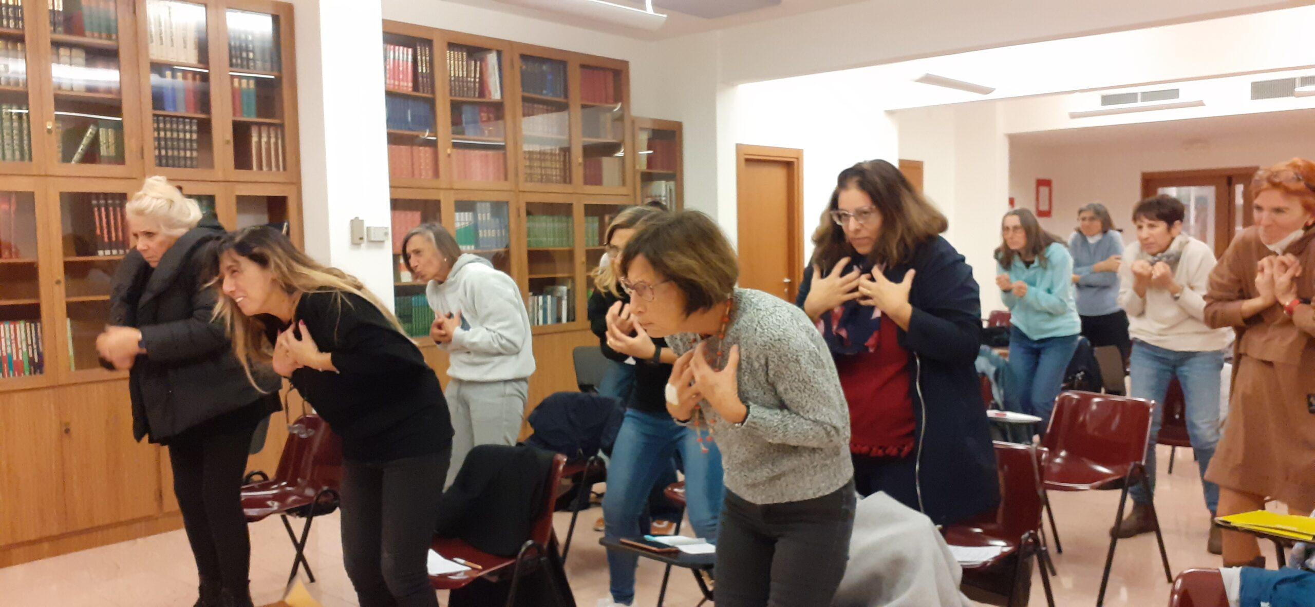 Sono emerse le rigidità e le difficoltà degli insegnanti nel movimento espressivo. Un tema che ha fatto riflettere i partecipanti, in particolare sul sentirsi valutati – se non giudicati – nel momento in cui ci si mette in gioco con tutto il corpo.
