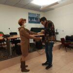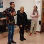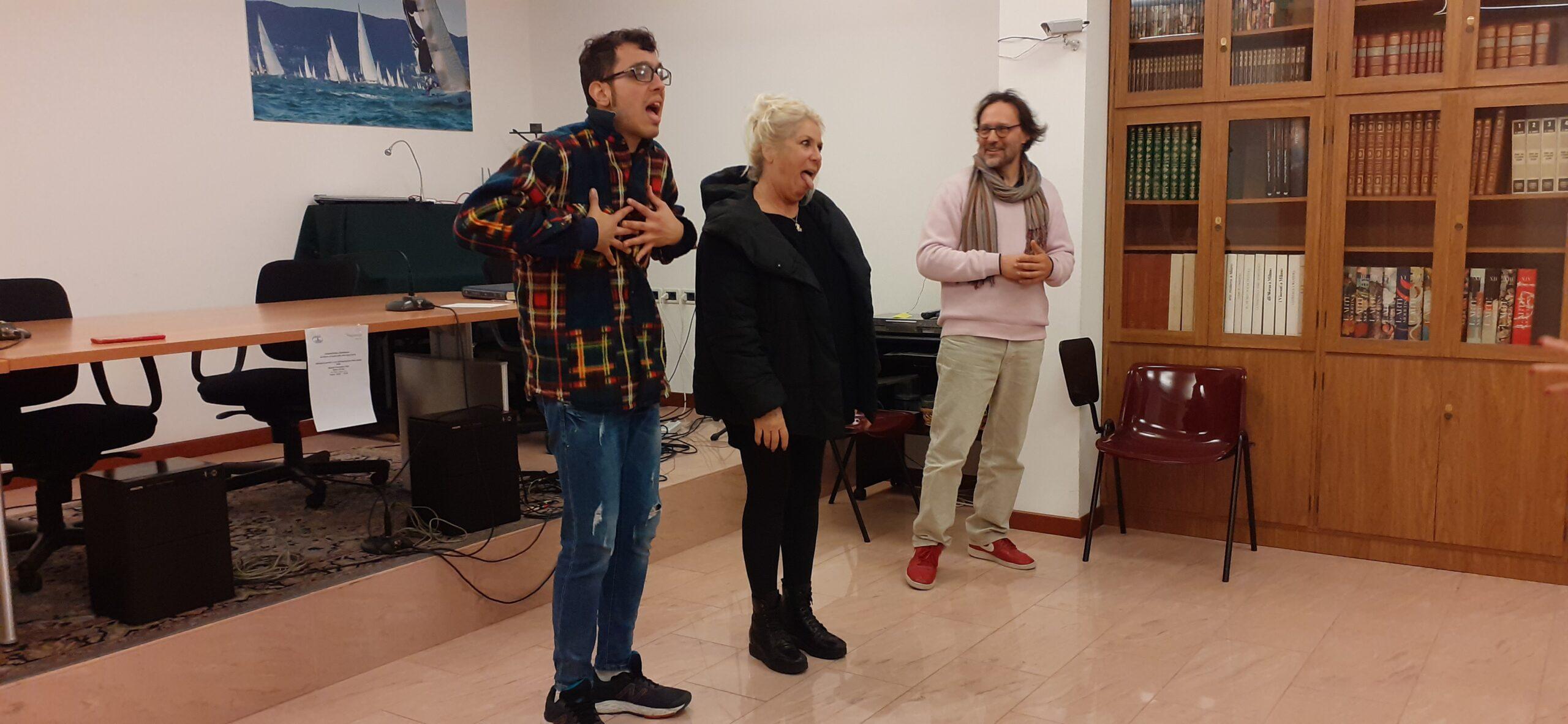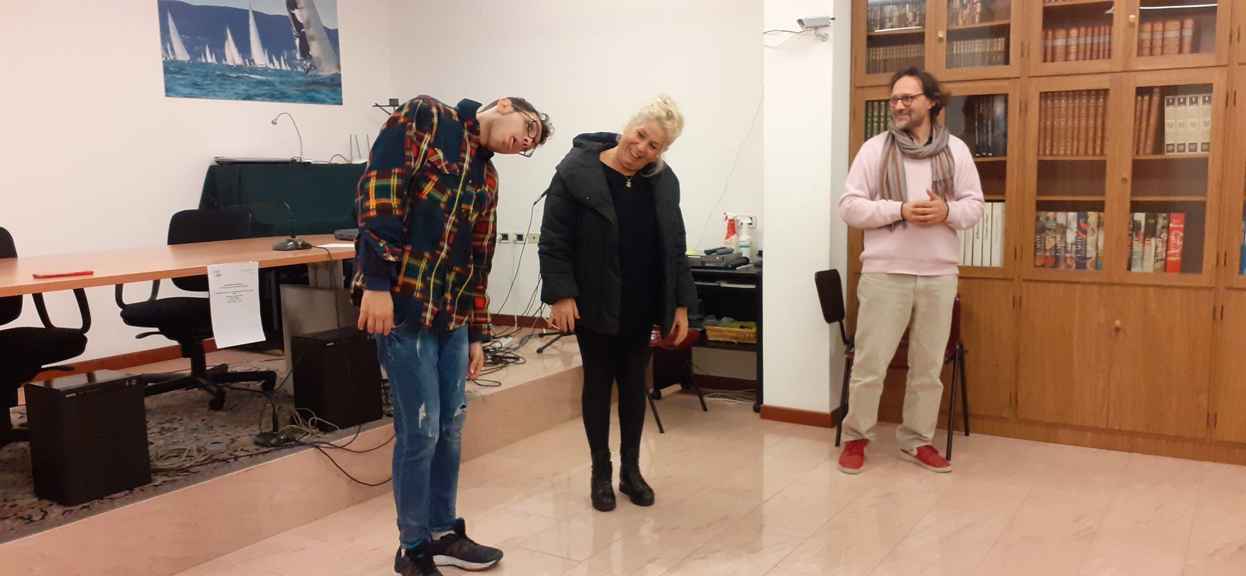 L’azione teatrale è proseguita con un via via sempre maggiore coinvolgimento dei partecipanti al laboratorio, che sono stati invitati a imitare movimenti e parole di Manuel sia dal proprio posto che dal palcoscenico.